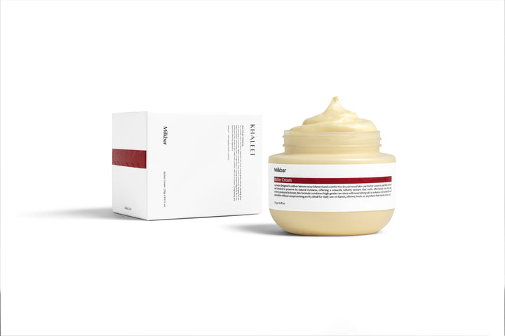 a product designed to deliver intense nourishment and comfort to dry, stressed skin. our butter cream is carefully refined and blended to preserve its natural richness, offering a smooth, velvety texture that melts effortlessly into the skin. entirely produced in-house, this formula combines high-grade raw shea with nourishing oils to enhance spreadability and absorption without compromising purity. Ideal for daily use on hands, elbows, heels, or anywhere that needs extra care.